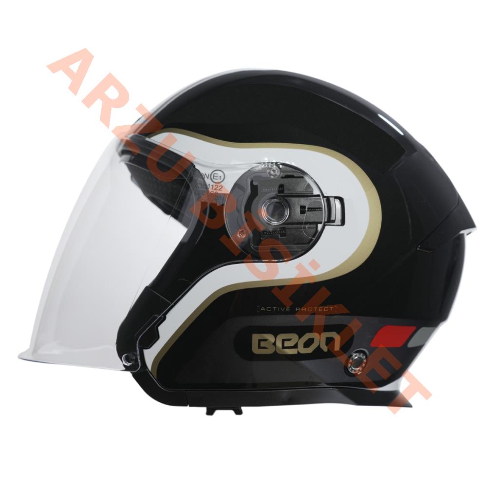 BEON- ÇENESİZ VİZÖRLÜ YAZLIK KASK [B203] [SİYAH-BEYAZ-ALTIN] [XXL]